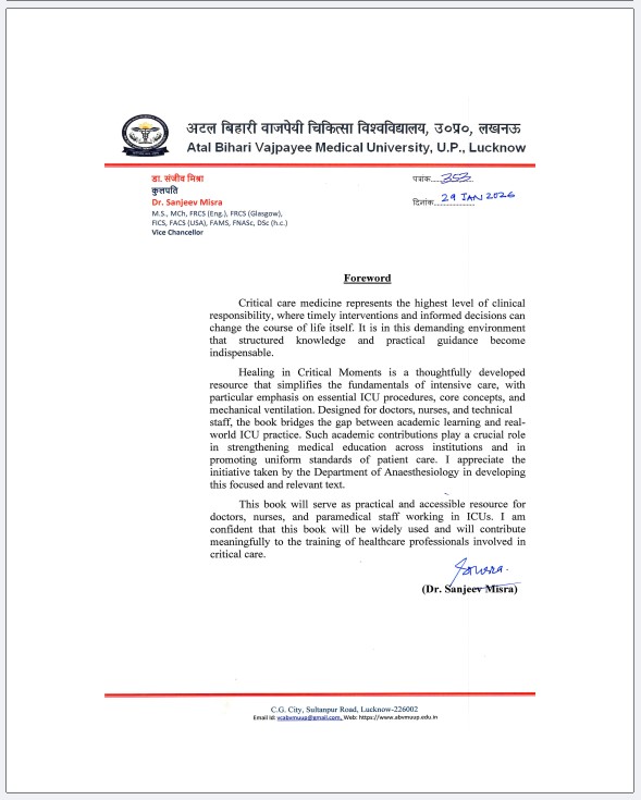 This book is a collective academic effort led by the Department of Anaesthesiology, with valuable contributions from the Department of Emergency Medicine and the College of Nursing. It reflects the shared responsibility of all critical care professionals who work together to stabilize, support, and heal patients during